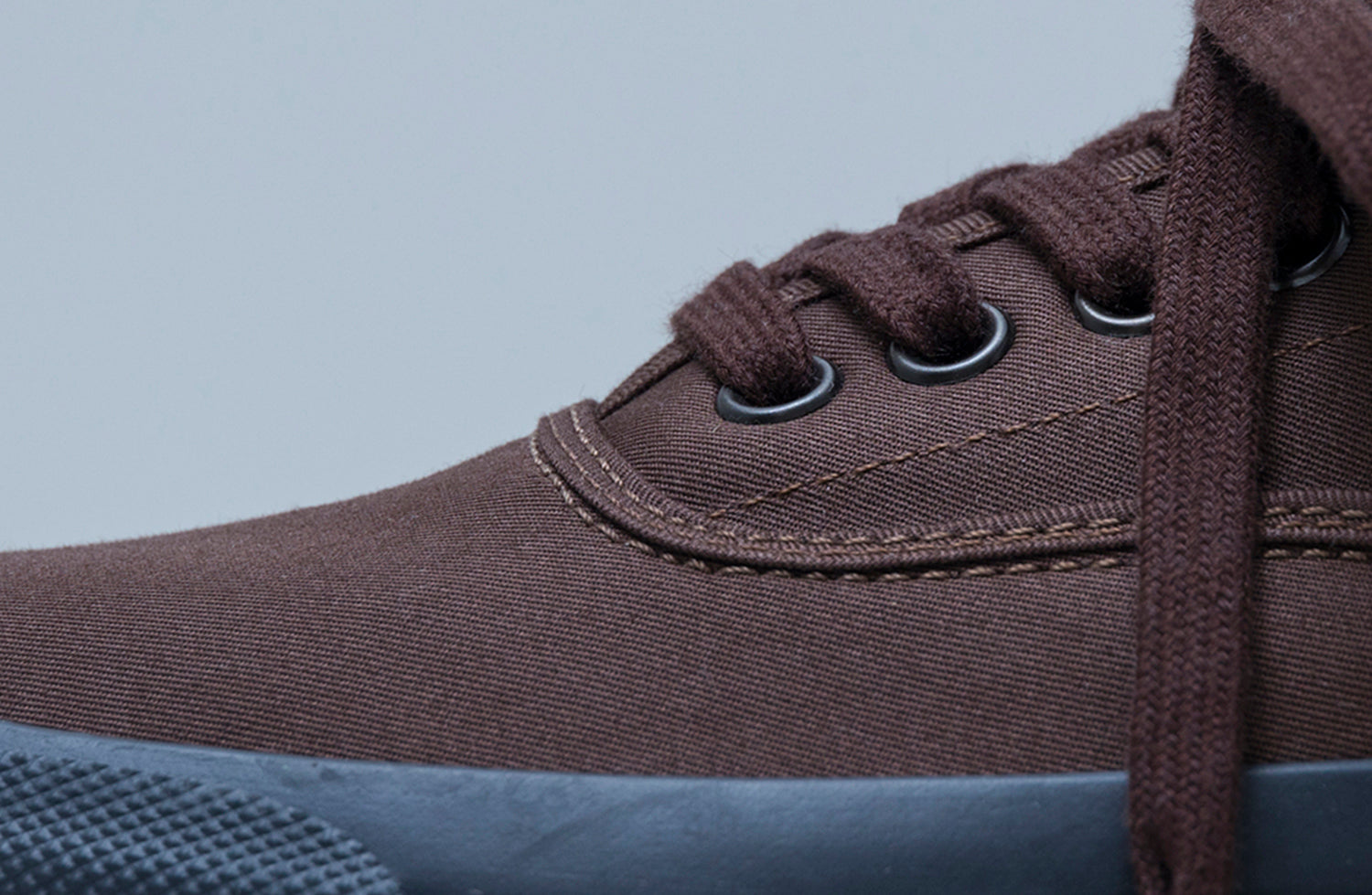 <DOEK OXFORD>は内羽根式のテニスシューズのデザインを踏襲、特定の主張となるようなものを排し、素材とそれらを最大限生かすことだけを考えました。アッパーには国産ギャバジン生地の「NEW CHAMOIS(ニューセーム)」を採用。非常になめらかで程よい光沢のある質感は、平織りのキャンバスとはまた異なる表情で、通年で着用しやすいのも魅力です。細番手の糸で高密度に打込んだギャバジン生地は、撥水性や耐久性に優れ、それでいてコットン100%なので、普段のケアも簡単です。フットベッドには、天然の通気性を持った素材であるコルクを採用しました。丹誠な手仕事によるヴァルカナイズ製法は、美しさ、履きやすさ、耐久性において、今の暮しに必要十分なプロダクトを生み出します。
