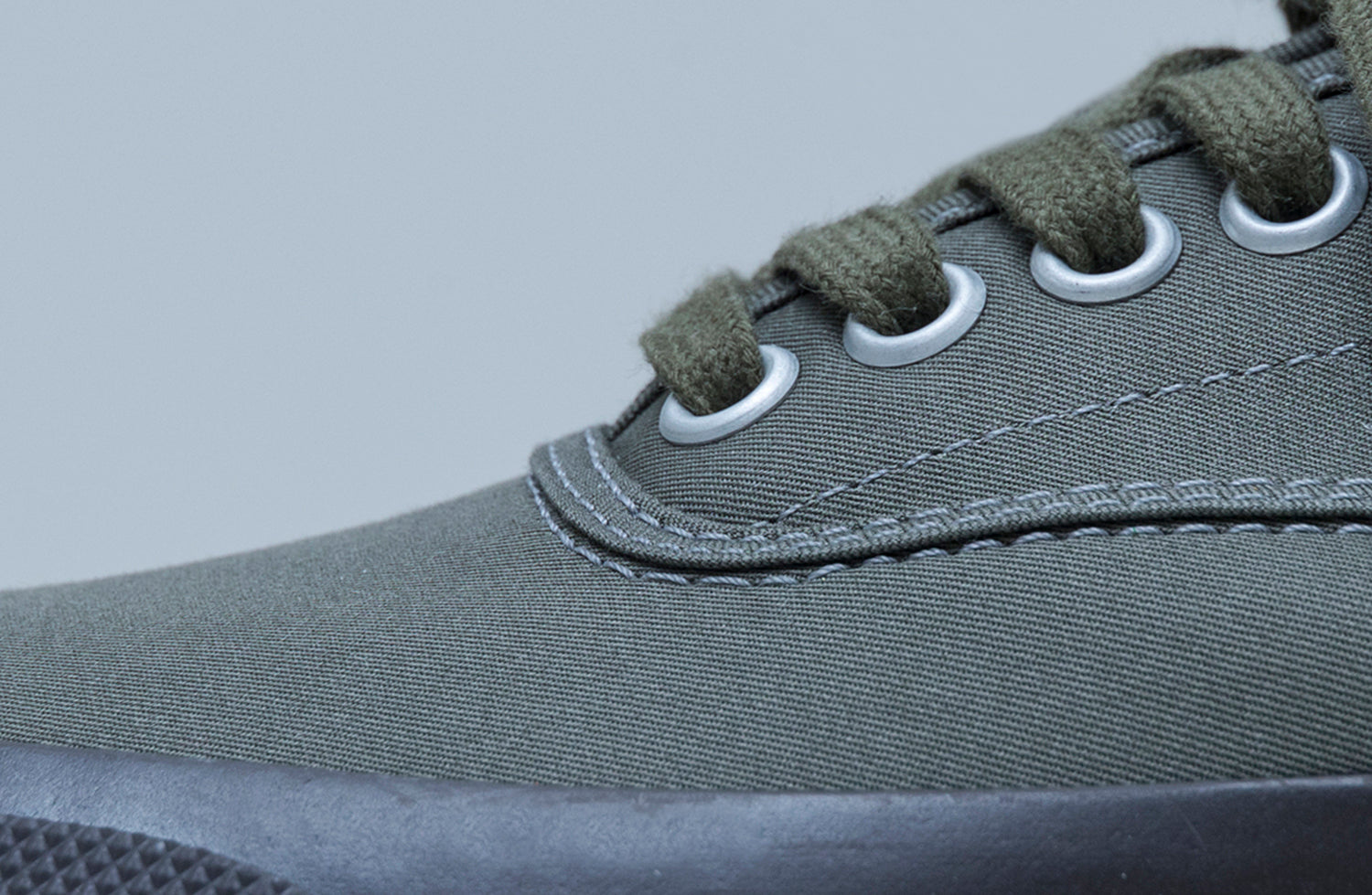 <DOEK OXFORD>は内羽根式のテニスシューズのデザインを踏襲、特定の主張となるようなものを排し、素材とそれらを最大限生かすことだけを考えました。アッパーには国産ギャバジン生地の「NEW CHAMOIS(ニューセーム)」を採用。非常になめらかで程よい光沢のある質感は、平織りのキャンバスとはまた異なる表情で、通年で着用しやすいのも魅力です。細番手の糸で高密度に打込んだギャバジン生地は、撥水性や耐久性に優れ、それでいてコットン100%なので、普段のケアも簡単です。フットベッドには、天然の通気性を持った素材であるコルクを採用しました。丹誠な手仕事によるヴァルカナイズ製法は、美しさ、履きやすさ、耐久性において、今の暮しに必要十分なプロダクトを生み出します。